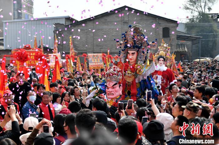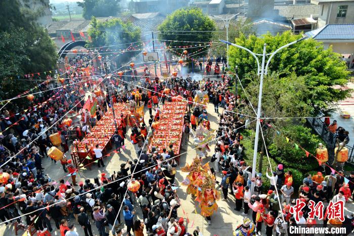 圖為傳統(tǒng)游神民俗活動(dòng)中的巡游隊(duì)伍。中新網(wǎng)記者 呂明 攝