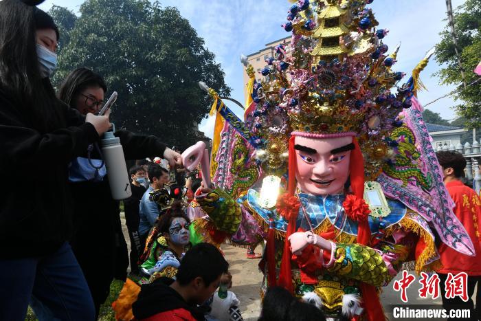 中新網(wǎng)福州2月19日電 (葉秋云)“咚咚咚……”19日上午,一陣陣鑼鼓聲從僑鄉(xiāng)福建省福州市長(zhǎng)樂區(qū)潭頭鎮(zhèn)厚福村傳出,一場(chǎng)傳統(tǒng)游神民俗活動(dòng)在此舉行,來自海內(nèi)外的游客紛紛舉起手機(jī)和相機(jī)拍照留影。