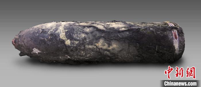 “靖遠”艦遺址發(fā)掘出水的210MM口徑克虜伯炮彈。山東省水下考古研究中心供圖