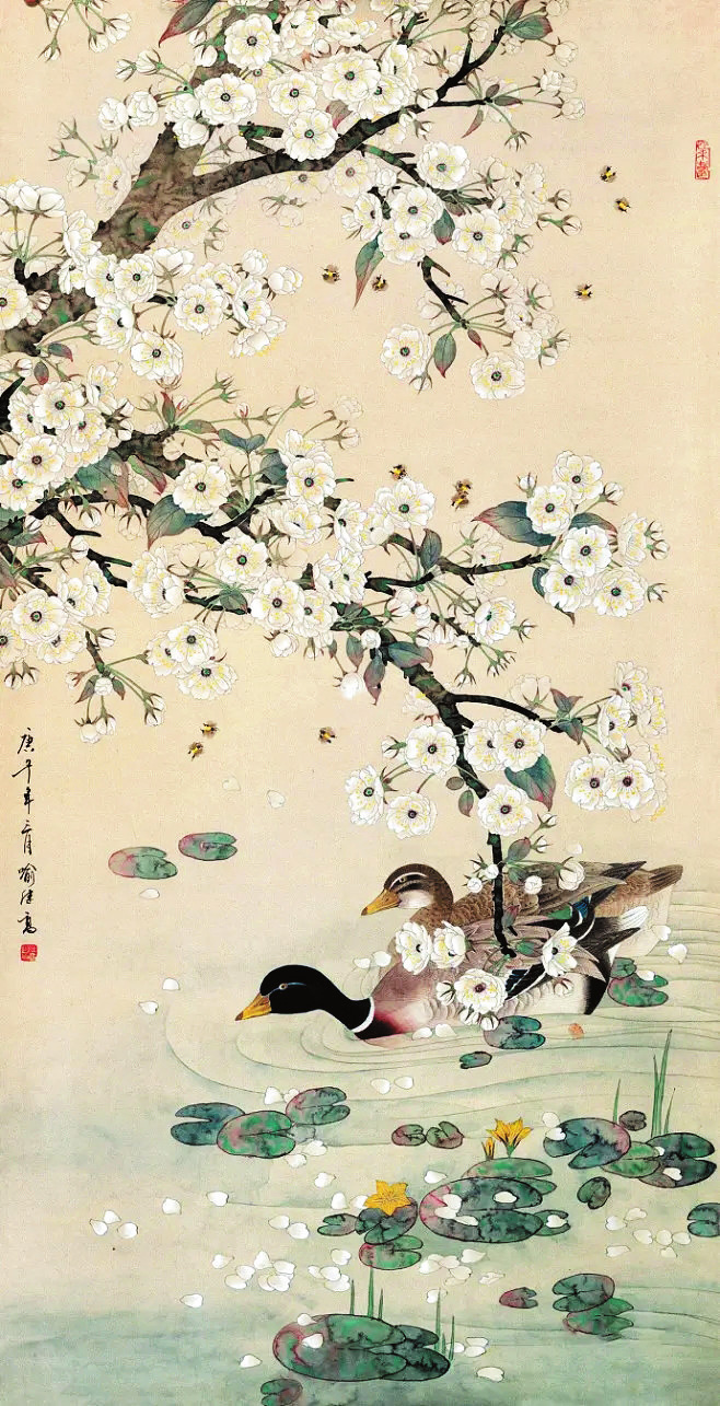 按照農(nóng)歷,春天分為初春、仲春、暮春。初春,又稱“孟春”,是春季的第一個月,具體指立春至驚蟄期間,彼時植物萌芽生長、動物繁殖、農(nóng)夫下地播種。仲春即農(nóng)歷二月,因處春季之中,故而得名。暮春指春季的末尾階段,即農(nóng)歷三月,此時雨水較多,繁花凋落,綠葉茂盛。自古以來,每到新的一年春氣發(fā)動的時節(jié),抒發(fā)愉悅之情的詠春詩詞便開始登場,正如劉希夷所說:“年年歲歲花相似,歲歲年年人不同?!痹谔圃娕c宋詞中,一樣的春日,卻有著不同的風(fēng)景,可謂淺黛深濃,各發(fā)天籟。 一 總體說來,唐詩中的春天大多明媚歡快,對應(yīng)的時節(jié)主要在初春、仲春。唐代楊巨源的《城東早春》曰:“詩家清景在新春,綠柳才黃半未勻。若待上林花似錦,出門俱是看花人。”早春的柳樹冒出半黃的嫩芽,如此清新的景色最能激發(fā)詩家的詩情,若是等到花開似錦、游人如織的時候再去寫春天就俗了。正因此,描寫早春的詩歌最是清新歡快。蘇軾《惠崇春江曉景》寫的也是這一時節(jié):“竹外桃花三兩枝,春江水暖鴨先知。簍篙滿地蘆芽短,正是河豚欲上時?!碧一ǔ蹙`當(dāng)是早春,桃花、水鴨、蔞蒿、河豚,這些活躍的物象爭相傳達生機遍地的驚喜之感。賀知章的《詠柳》詩云:“碧玉妝成一樹高,萬條垂下綠絲絳。不知細(xì)葉誰裁出,二月春風(fēng)似剪刀。”“二月春風(fēng)”點明是仲春景象,高高的柳樹就像用碧玉裝飾而成,萬條低垂的柳枝猶如綠色的絲帶,不知眼前的細(xì)葉是由誰的巧手裁出,二月的春風(fēng)好似一把靈巧的剪刀。 唐詩中描寫春景的詩句數(shù)不勝數(shù)。張九齡的《山舍南溪小桃花》描繪出山間桃花盛開的景象:“一樹繁英奪眼紅,開時先合占東風(fēng)??蓱z地僻無人賞,拋擲深山亂木中。”王維《輞川別業(yè)》中用青草蔥蔥烘托出桃花的燦爛奪目,表達對鄉(xiāng)間田園生活的喜愛之情,全詩清新明快,意境優(yōu)美:“不到東山向一年,歸來才及種春田。雨中草色綠堪染,水上桃花紅欲然。”李白《陽春歌》曰:“長安白日照春空,綠楊結(jié)煙垂裊風(fēng)。披香殿前花始紅,流芳發(fā)色繡戶中?!贝嗽姙槔畎讛M前人之作,表面寫帝王在宮中的享樂生活,實則隱含對統(tǒng)治者荒廢政務(wù)的諷刺。 唐詩中的春景之最,當(dāng)是張若虛的《春江花月夜》:“春江潮水連海平,海上明月共潮生。滟滟隨波千萬里,何處春江無月明!江流宛轉(zhuǎn)繞芳甸,月照花林皆似霰??绽锪魉挥X飛,汀上白沙看不見。江天一色無纖塵,皎皎空中孤月輪。江畔何人初見月?江月何年初照人?人生代代無窮已,江月年年望相似。不知江月待何人,但見長江送流水?!?/p> 這首詩沿用樂府舊題,運用富有生活氣息的清麗之筆,以江為場景,以月為主體,描繪出一幅幽美邈遠、惝恍迷離的春江月夜圖。通篇融詩情、畫意、哲理為一體,意境空明,想象奇特,語言自然雋永,韻律宛轉(zhuǎn)悠揚,為歷代文人墨客吟詠唱誦,被聞一多譽為“詩中的詩,頂峰上的頂峰”。如此宏闊壯美的春夜、春景,以及“不亢不卑,沖融和易”的人生態(tài)度,才是盛唐氣象的代表。清人賀裳評此詩風(fēng)度格調(diào)“若云開山出,境界一新”,梁啟超更是稱贊:“全首讀來,固然回腸蕩氣;但那音節(jié)既不是哀絲豪竹一路,也不是急管促板一路,專用和平中聲,出以搖曳,確是三百篇正脈。”