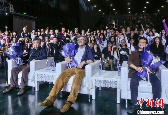 4月25日,第十四屆北京國(guó)際電影節(jié)埃米爾·庫(kù)斯圖里卡電影大師班在北京舉行,塞爾維亞導(dǎo)演埃米爾·庫(kù)斯圖里卡和導(dǎo)演黃建新、作家余華探討“國(guó)族史詩(shī)與心靈奇跡”。圖為活動(dòng)現(xiàn)場(chǎng)。 記者 易海菲 攝