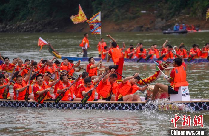 6月6日,龍舟“活水”儀式在江西省新余市仙女湖區(qū)昌山廟袁河水域舉行。龍舟競(jìng)渡形式多為直道競(jìng)速,賽程約500米,一程為“一水”。趙春亮攝