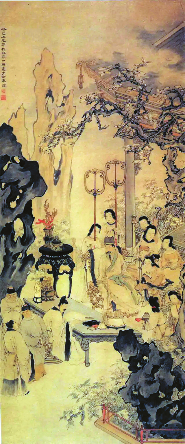 唐人李濬的《松窗雜錄》載,李白在長(zhǎng)安任翰林待詔時(shí),一日宮中牡丹綻放,唐玄宗與楊貴妃前往賞花,找來李龜年等人奏樂歌唱。但玄宗看了歌單,覺得都是些過氣的舊曲子,配不上眼前的名花美女,就讓李龜年趕快去找李白填新詞。當(dāng)時(shí)李白宿醉未醒,趁著酒力秉筆賦詞,當(dāng)場(chǎng)寫就三首《清平調(diào)》歌頌楊貴妃的美貌。待李龜年唱完,楊貴妃很高興,還親自領(lǐng)唱了這三首歌。唐玄宗也吹著玉笛伴奏,由此奠定了李白在盛唐詩壇“一哥”的重要地位。李白創(chuàng)作樂府詩的事情被收入《舊唐書》:“玄宗度曲,欲造樂府新詞,亟召白,白已臥于酒肆矣。召入,以水灑面,即令秉筆,頃之成十余章,帝頗嘉之。”這段關(guān)于李白的佳話,在中國(guó)詩歌史上留下濃墨重彩的一筆。