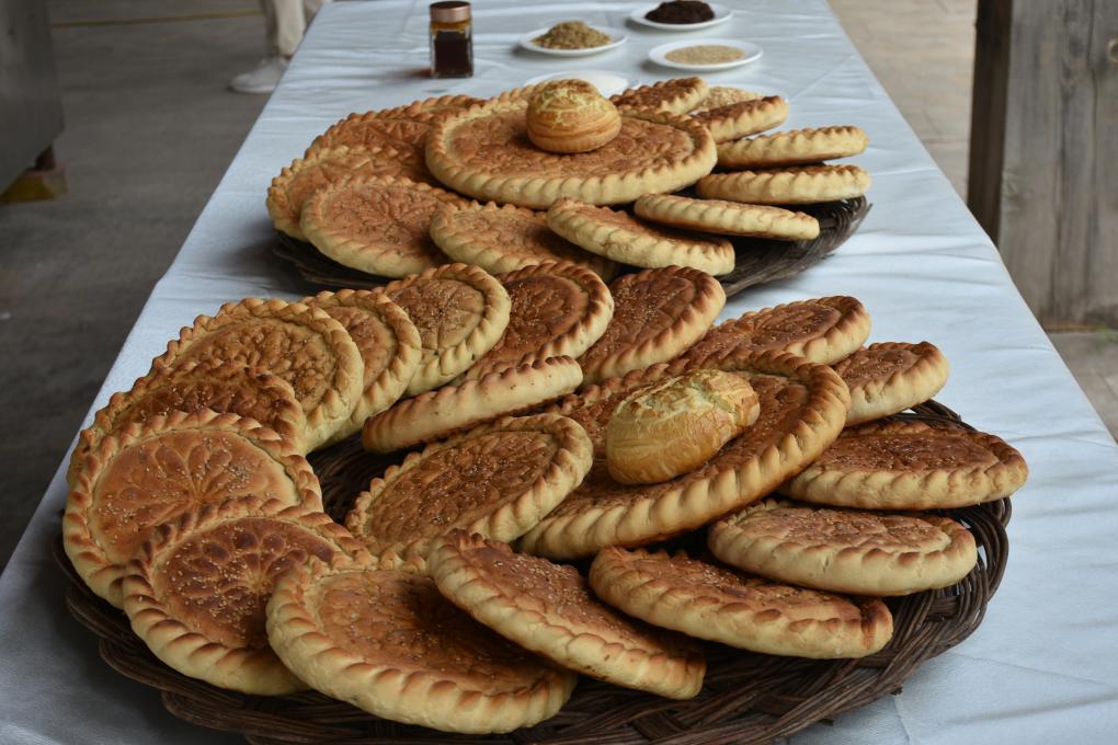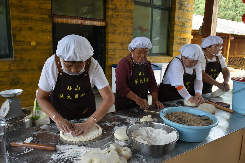 張小女制作的“大團圓”月餅體現(xiàn)了當?shù)靥厣?。澤州粗月餅看上去像一個鎖著花邊的圓形面餅,內(nèi)包兩層冰糖、花生、葡萄干、核桃仁等雜碎餡料,表面裝飾圖案,或蒸或烤而成。講究的圖案比較復(fù)雜,但張小女喜歡在村口拔棵野草,洗干凈后,印在上面,充滿野趣。