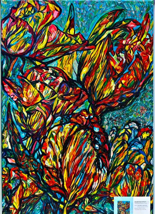 此次分享會還展出了孫寬的油畫作品郁金香系列十余幅。她的油畫藝術(shù)風(fēng)格,以強烈的色彩和抒情性著稱,受現(xiàn)代派,后現(xiàn)代派繪畫影響,擅長通過冷色調(diào),尤其是藍色表達情感,作品如《落地生根》《藍色突圍》《核》等被評為詩性繪畫。