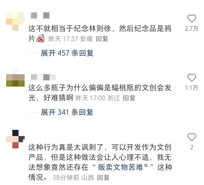 網(wǎng)友的評(píng)論,反映出公眾對(duì)該設(shè)計(jì)的強(qiáng)烈不適感。這款承載著“文物歸鄉(xiāng)”意義的文創(chuàng)產(chǎn)品,卻因設(shè)計(jì)細(xì)節(jié)被指“消費(fèi)歷史苦難”。