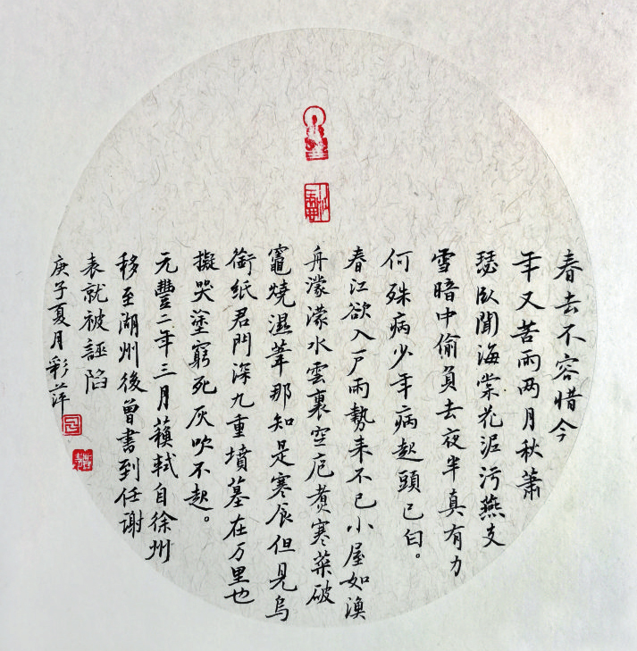 遺山詩社近期刊登的呂彩萍作品專輯,內(nèi)容上大致可分兩類:一是有關(guān)抗疫的時事情狀;二是吟詠梅蘭竹菊等花草植物以及四季更替、重要節(jié)日等,托風雅之詞,明自我心性。從藝術(shù)角度看,這些作品或沉思、或靈動,思緒開闊,韻致嫣然,詞畫有機相融,用典自如妥切,抒情性于辭采,詠雅志而不自矜。涵詠其間,若瓊花滿地,玉階生輝,天籟清風吹散密云,月下疏影暗吐清香。仔細品讀,可感受到作品呈現(xiàn)出的四種藝術(shù)之美,本文試作解讀。