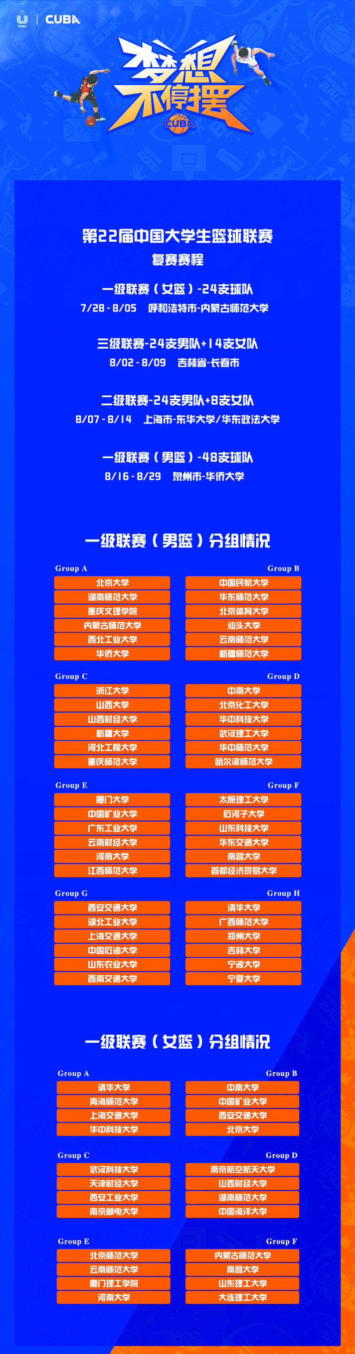 和職業(yè)聯(lián)賽不同,從決定復賽到打完決賽,留給本賽季CUBA只有不到兩個月的時間。在這種情況下聯(lián)賽組委會緊急調整,需要在確保賽事安全、符合防疫規(guī)定的前提下,設計一個精彩、科學的賽程,讓本屆畢業(yè)生順利完賽、不留遺憾。