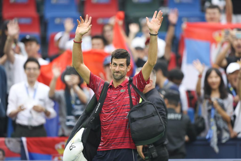 2019年10月11日,在2019年上海大師賽男子單打四分之一決賽后,焦科維奇向觀眾致意。新華社記者 丁汀 攝
