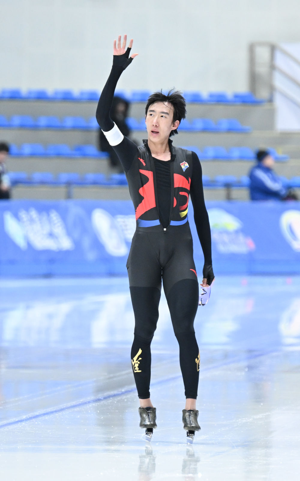 1月14日,內(nèi)蒙古隊選手韓梅在賽后向觀眾致意。新華社記者 連振 攝