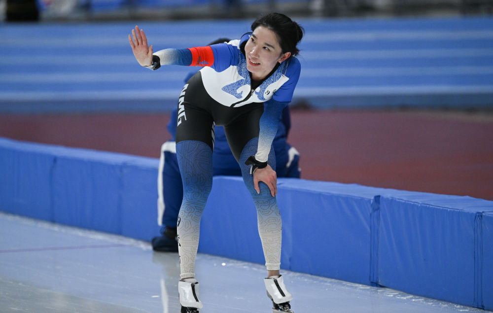 韓梅在“十四冬”上共獲得三金一銀。談及最難忘的一枚獎牌,她挑了1000米的銀牌?!白约阂矝]想到前600米的水平會很高,(最后一圈)想要急于完成一些(動作)的同時,一些細(xì)節(jié)還是不夠充分?!彼χf,不算遺憾吧,這七八年其實并沒有重點練過1000米,但確實運(yùn)氣差了一點。
