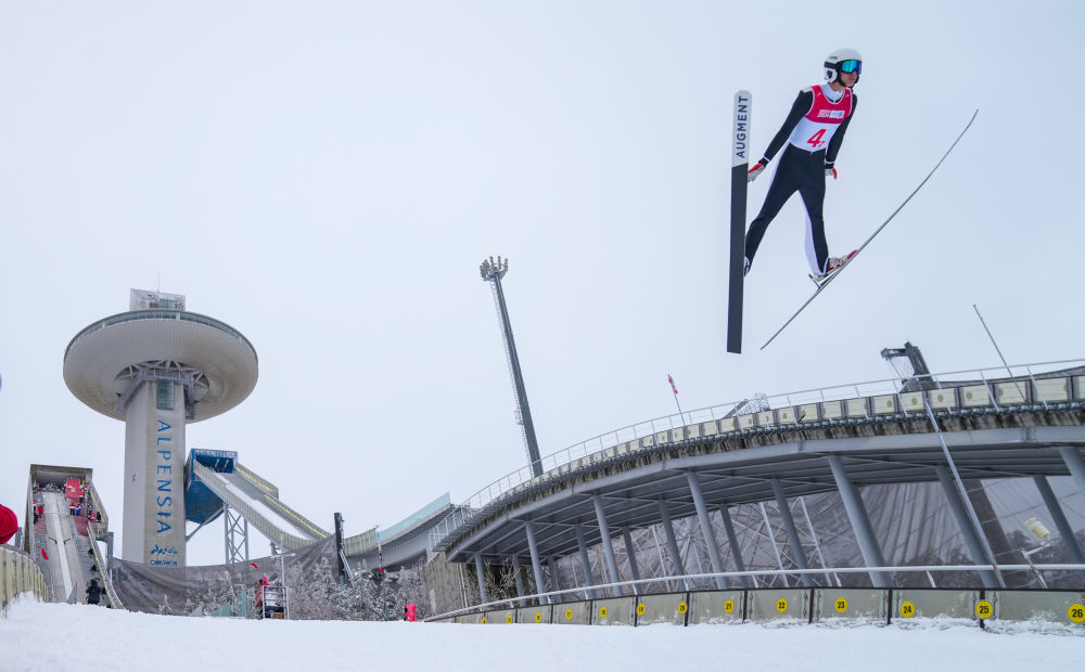 1月21日,跳臺滑雪混合團體賽決賽中,中國組合任浩然、鄭鵬博、翁楊寧和唐嘉鴻以543.2分的成績獲得第十二名,圖為任浩然在比賽中。新華社記者 張笑宇 攝
