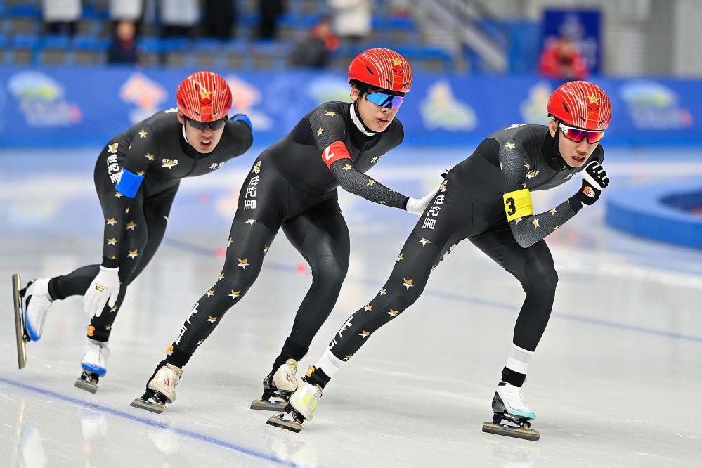 在速滑青年組女子團體追逐賽中,先是吉林隊以3分09秒52的成績打破該項目全國青年紀錄,河北隊和四川隊隨后又分別刷新了紀錄,最終四川隊力壓河北隊奪得冠軍,將該紀錄刷新為3分07秒46。四川隊隊員太智恩說:“為了這個比賽,我和隊友們準備了6年。”