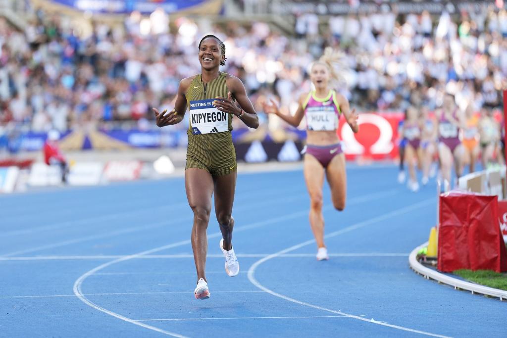 去年的鉆石聯(lián)賽巴黎站比賽中,基普頁真曾創(chuàng)造女子5000米世界紀(jì)錄。此次她參加的項(xiàng)目是1500米。在配速員的引領(lǐng)下,肯尼亞人前800米用時2分4秒,隨后配速員退出賽道,基普頁真速度不減,最終她以3分49秒04的成績率先撞線,將自己去年在鉆石聯(lián)賽佛羅倫薩站創(chuàng)造的世界紀(jì)錄提升了0.07秒。