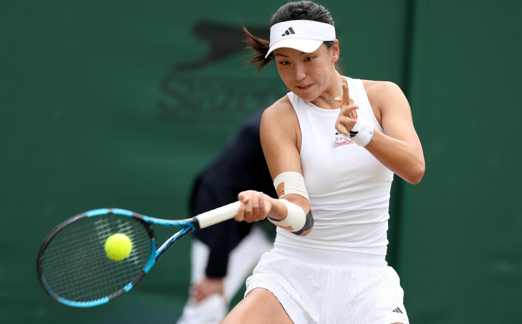 7月8日,王欣瑜在比賽中回球。新華社記者 李穎 攝