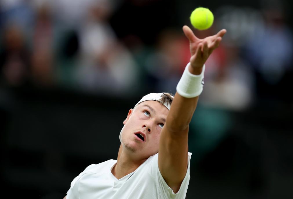 7月8日,魯內(nèi)在比賽中發(fā)球。新華社記者 李穎 攝