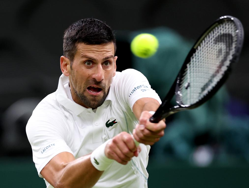 7月8日,焦科維奇在比賽中回球。新華社記者 李穎 攝