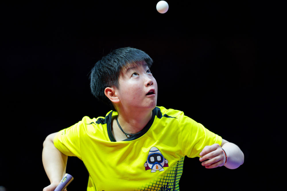 12月30日,深圳大學隊選手孫穎莎在單打比賽中發(fā)球。新華社記者 孫非 攝