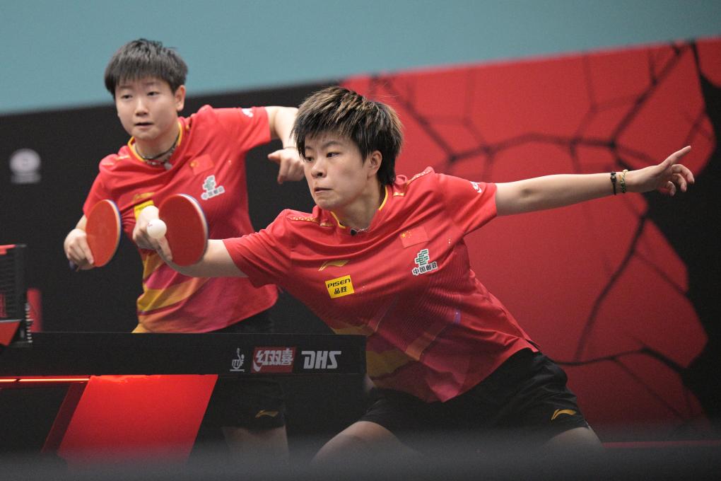 2月7日,中國(guó)組合孫穎莎/王藝迪(右)在比賽中。新華社發(fā)(鄧智煒攝)