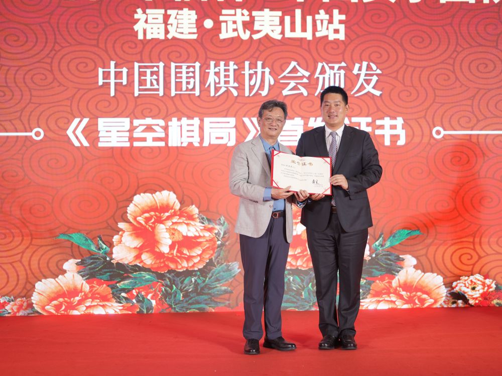 開幕式上還發(fā)布了聯(lián)賽主題曲《星空棋局》。儀式最后,與會嘉賓灑下手中金粉,勾勒出聯(lián)賽名稱的輪廓,本屆女子圍甲正式開幕。