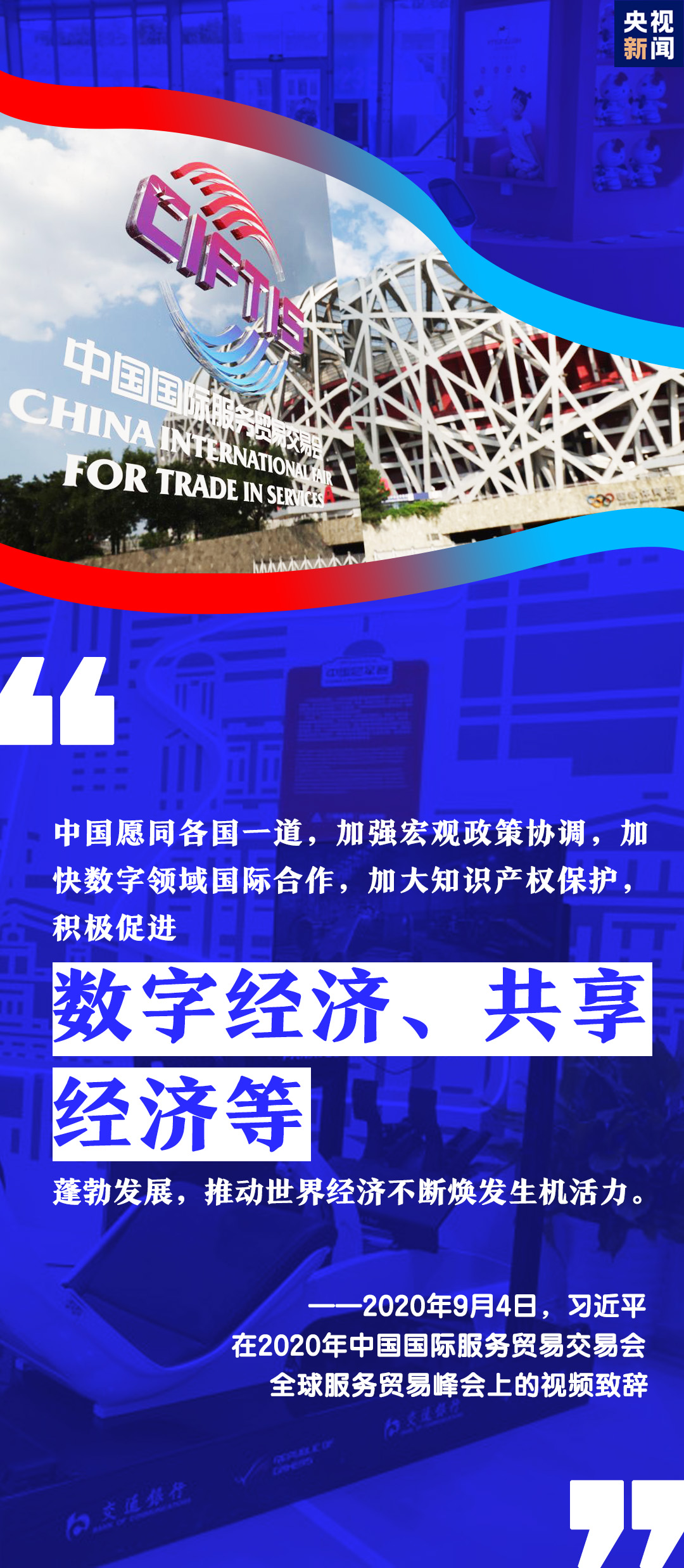“我們要順應數(shù)字化、網(wǎng)絡化、智能化發(fā)展趨勢,共同致力于消除‘數(shù)字鴻溝’,助推服務貿(mào)易數(shù)字化進程?!泵鎸Ξ斀袷澜缯诮?jīng)歷的百年未有之大變局,習近平的話語擲地有聲。
