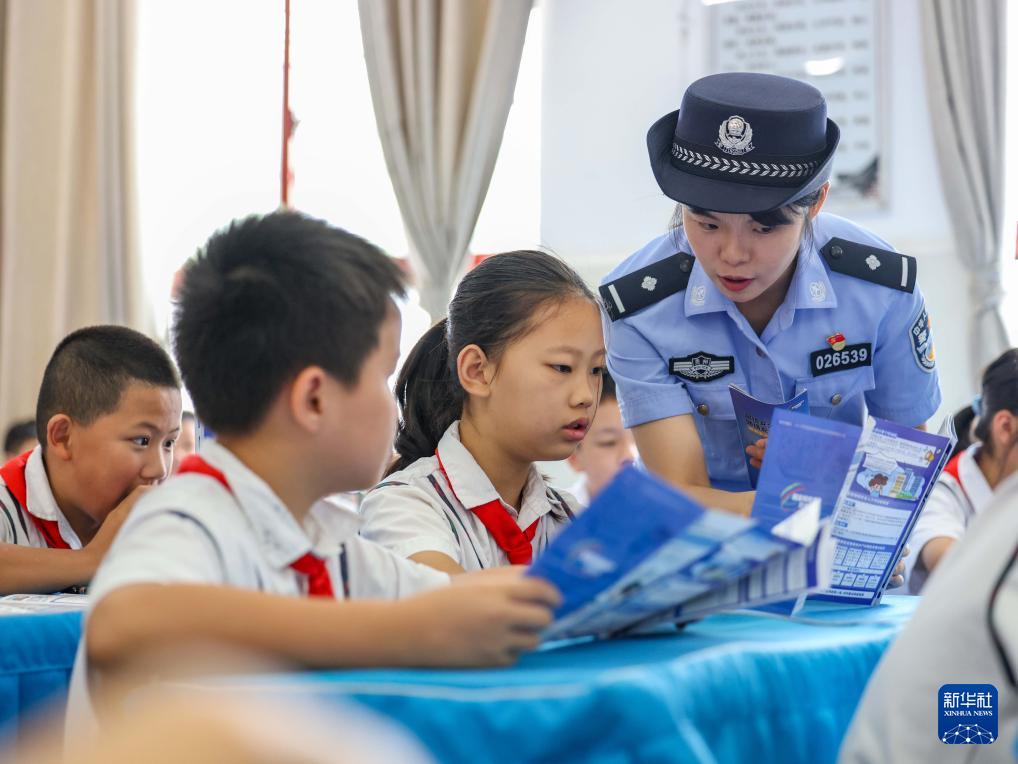 9月11日,貴州省安順市公安局西秀分局民警在安順市第七小學為學生講解不良上網(wǎng)習慣的危害。(新華社發(fā) 陳熙 攝)