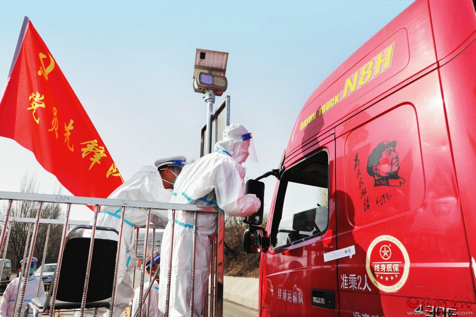 沖鋒在前,勇于擔(dān)當(dāng)。黨員先鋒崗成為抗疫戰(zhàn)場(chǎng)的亮麗風(fēng)景線。圖為原平市黨員志愿者在道路卡口值守。 褚 震攝