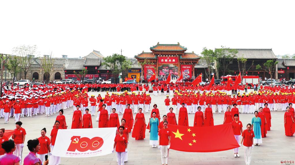 頌歌獻(xiàn)給黨,啟航新征程。在中國共產(chǎn)黨成立100周年之際,千余人歡聚忻州古城廣場(chǎng),群情昂揚(yáng)、載歌載舞喜慶黨的百年華誕。 張存良攝