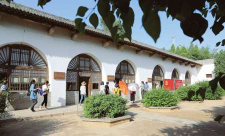 盛夏時(shí)節(jié),呂梁市興縣蔡家崖村一派生機(jī),群山環(huán)抱下的晉綏邊區(qū)革命紀(jì)念館,莊嚴(yán)地矗立在蔚汾河畔。