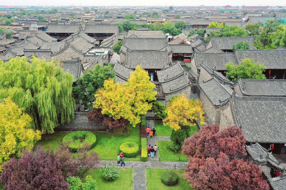10月4日,游人在世界文化遺產(chǎn)平遙古城游覽。當(dāng)日是我國(guó)傳統(tǒng)節(jié)日重陽(yáng)節(jié),又逢國(guó)慶長(zhǎng)假,人們來(lái)到平遙古城,登高遠(yuǎn)眺,秋游觀景,歡度佳節(jié)。