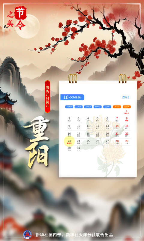新華社天津10月22日電(記者周潤健)“九日黃花酒,登高會昔聞。”10月23日,農(nóng)歷九月初九,重陽節(jié)。歲歲重陽,今又重陽。農(nóng)歷九月初九緣何是重陽?其中蘊(yùn)含著怎樣的“數(shù)字密碼”?