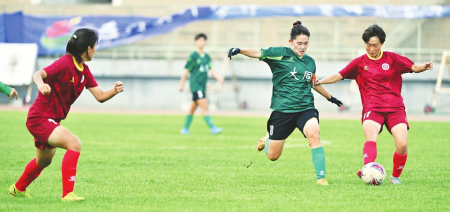 8月10日下午,第十六屆省運會女子甲組足球比賽落下帷幕,太原、大同、晉中分獲前三名。第五輪場序大同隊與呂梁隊的比賽中,隨著裁判一聲哨響,比賽正式打響。雙方球員在場上奮力奔跑,拼搶防守,場下的觀眾為球員們加油吶喊,現(xiàn)場氣氛火熱。大同隊最終以3∶0戰(zhàn)勝對手,奪得第二名。