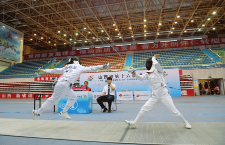 8月16日,省第十六屆運(yùn)動會擊劍比賽舉行,吸引了來自全省7支代表隊的124名運(yùn)動員參賽。本報記者阮洋攝