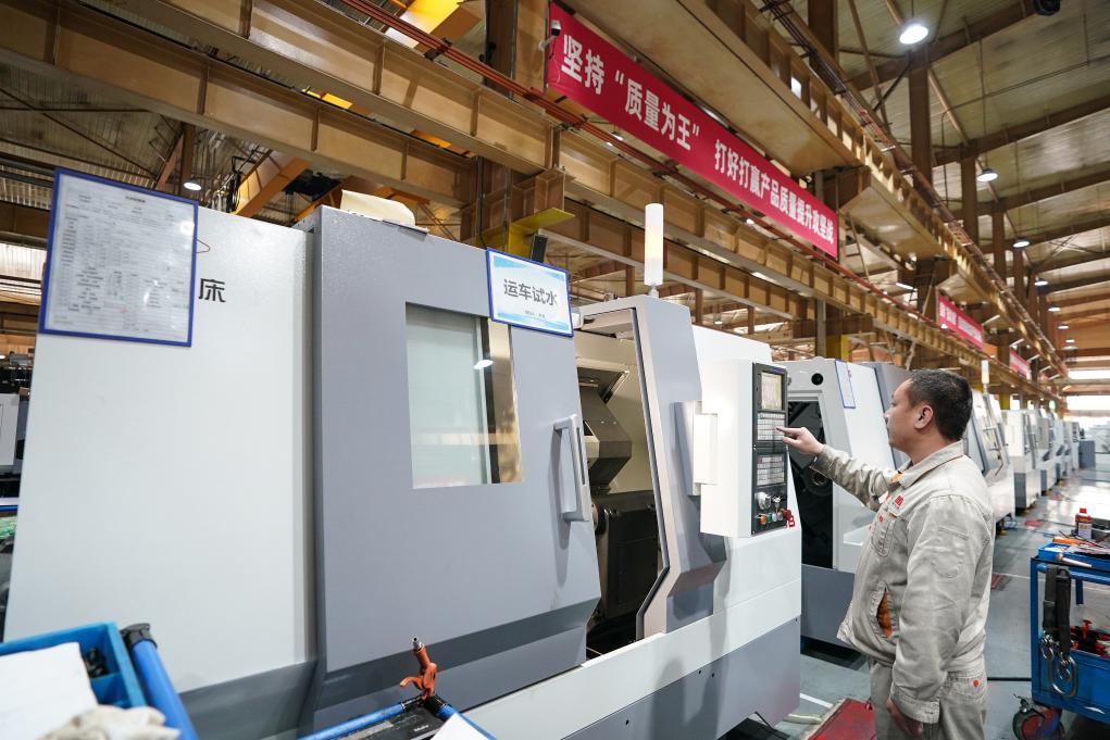 通用技術(shù)集團沈陽機床的工人在車間工作。新華社記者潘昱龍 攝