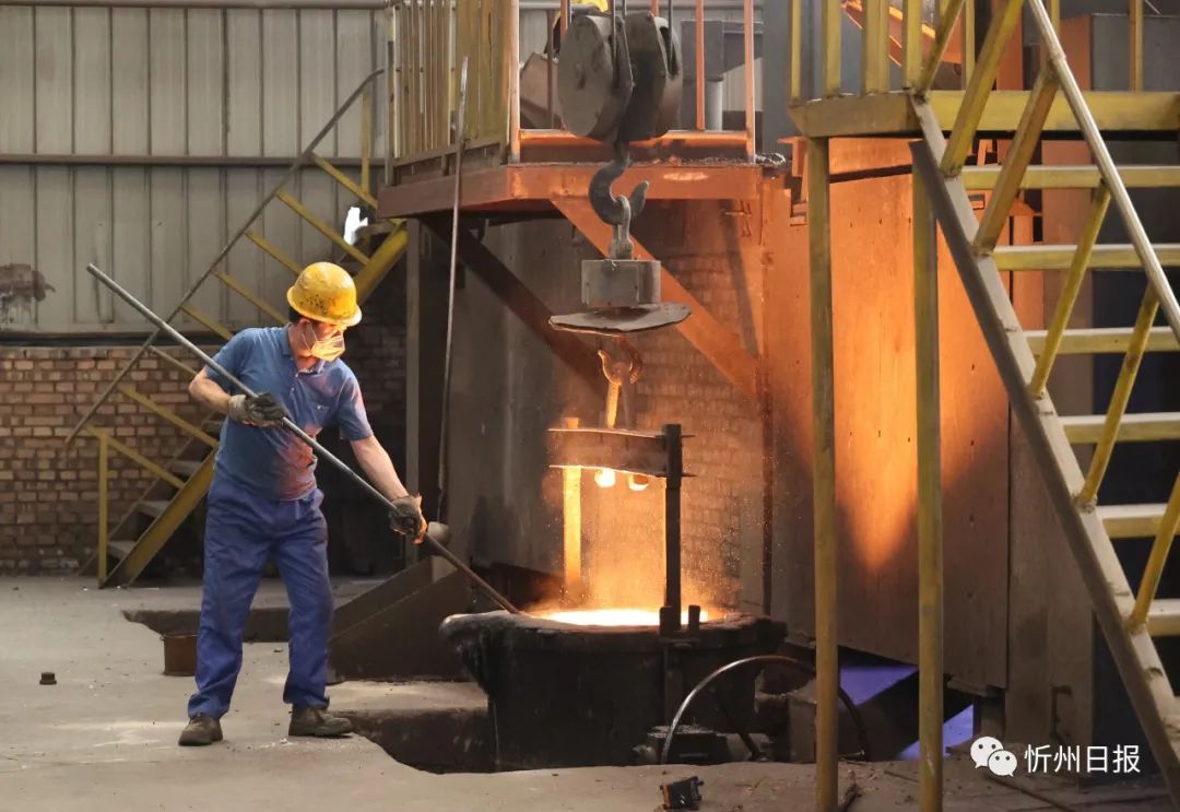 中興鑄業(yè)廠(chǎng)房。宮清華攝 中興鑄業(yè)已經(jīng)發(fā)展成一家集鐵礦開(kāi)采、礦石精選、礦粉冶煉、鑄鐵加工、機(jī)械制造為一體的集團(tuán)公司,這得益于繁峙縣豐富的礦產(chǎn)資源和良好的政策扶持。該縣擁有低硫低磷優(yōu)質(zhì)鐵礦和儲(chǔ)量居全省首位的金礦,生鐵黃金冶煉鑄造歷史悠久,是目前全國(guó)少數(shù)鑄造全產(chǎn)業(yè)鏈全覆蓋的縣之一,也是山西省公告鑄造產(chǎn)能最多的縣,已公告鑄造產(chǎn)能300萬(wàn)噸。 去年年底,“繁峙鑄造”被列為忻州市首批市級(jí)重點(diǎn)專(zhuān)業(yè)鎮(zhèn)。繁峙縣堅(jiān)定高端化、智能化、綠色化發(fā)展路徑,發(fā)揮鑄造產(chǎn)業(yè)基礎(chǔ)優(yōu)勢(shì)和獨(dú)特資源稟賦,優(yōu)化產(chǎn)業(yè)布局,引導(dǎo)要素集聚,吸引更多鑄造產(chǎn)業(yè)鏈上下游企業(yè)落戶(hù),鑄強(qiáng)“黑、白、黃”全產(chǎn)業(yè)鏈,壯大“六大”集群,高標(biāo)準(zhǔn)推進(jìn)“繁峙鑄造”專(zhuān)業(yè)鎮(zhèn)建設(shè)。 繁峙鑄造企業(yè)集中分布在砂河鎮(zhèn),位于砂河鎮(zhèn)的繁峙經(jīng)濟(jì)技術(shù)開(kāi)發(fā)區(qū)裝備制造園區(qū)是鑄造產(chǎn)業(yè)主要聚集地,華茂智能新材料、中興鑄業(yè)、南苑鋁業(yè)、安信鑄業(yè)等公司入駐園區(qū),具有發(fā)展鑄造流程短的良好條件,便于推動(dòng)全產(chǎn)業(yè)鏈的發(fā)展。