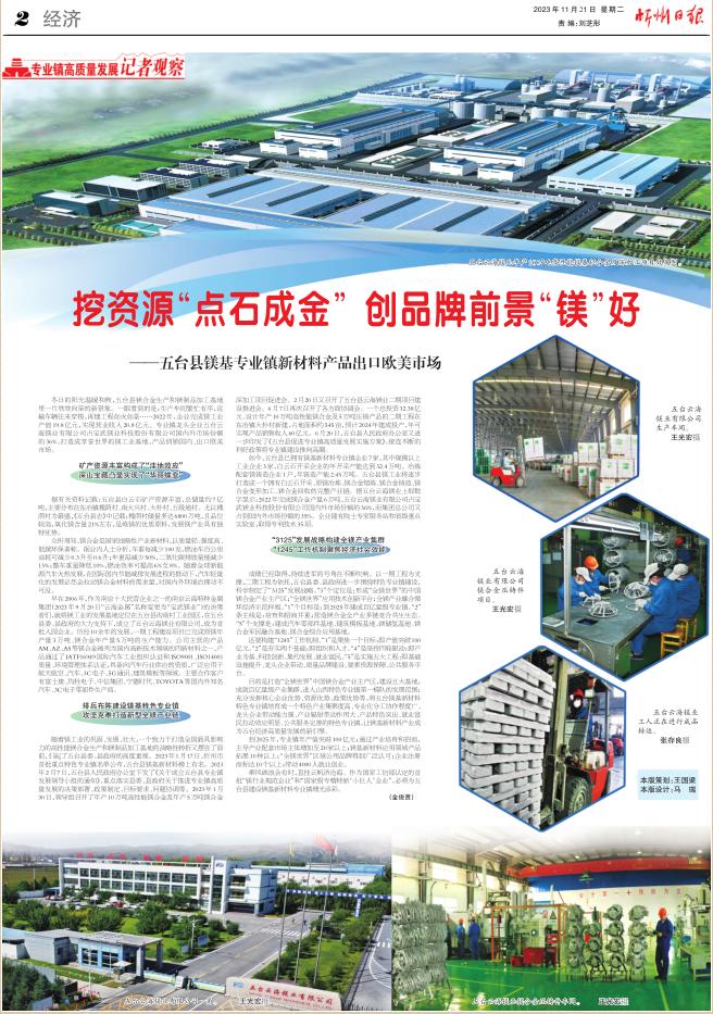 乘風破浪會有時,直掛云帆濟滄海。作為國家工信部認定的首批“鎂行業(yè)規(guī)范企業(yè)”和“國家級專精特新‘小巨人’企業(yè)”,必將為五臺縣建設(shè)鎂基新材料專業(yè)鎮(zhèn)增光添彩。 (金俊賢)