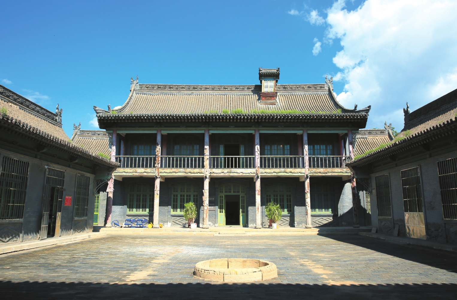 周玳官邸位于代縣上館鎮(zhèn)東南街村周家巷11號(hào),建于1930年,坐北朝南,占地面積3996平方米。二進(jìn)院落布局,中軸線上建有南房、過(guò)廳和正房(二層為藏書樓),兩側(cè)為門樓、東西配房及耳房,均為硬山頂磚木結(jié)構(gòu)。院西設(shè)花園,建六角亭1座。