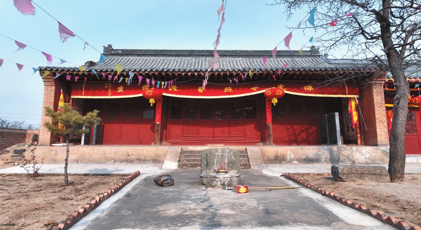 嘉圣寺位于代縣棗林鎮(zhèn)顯旺村北,創(chuàng)建年代不詳。據(jù)過殿題記載,明正德十六年(1521)重修。該寺坐北朝南,占地面積3295平方米,三進院落布局,中軸線上依次建有戲臺、過殿和正殿,兩側(cè)為東西配殿。過殿和正殿為明代建筑,其余皆為清代遺構(gòu)。過殿為石砌臺基,基寬11.2米、深9.3米、高1.3米,面寬三間,進深四椽,單檐懸山頂,五檁無廊式構(gòu)架,裝修已毀。正殿為石砌臺基,基寬11.3米、深9米、高0.9米,面寬三間,進深五椽,單檐硬山頂,六檁前廊式構(gòu)架,前檐明間和次間施四扇六抹格扇門。