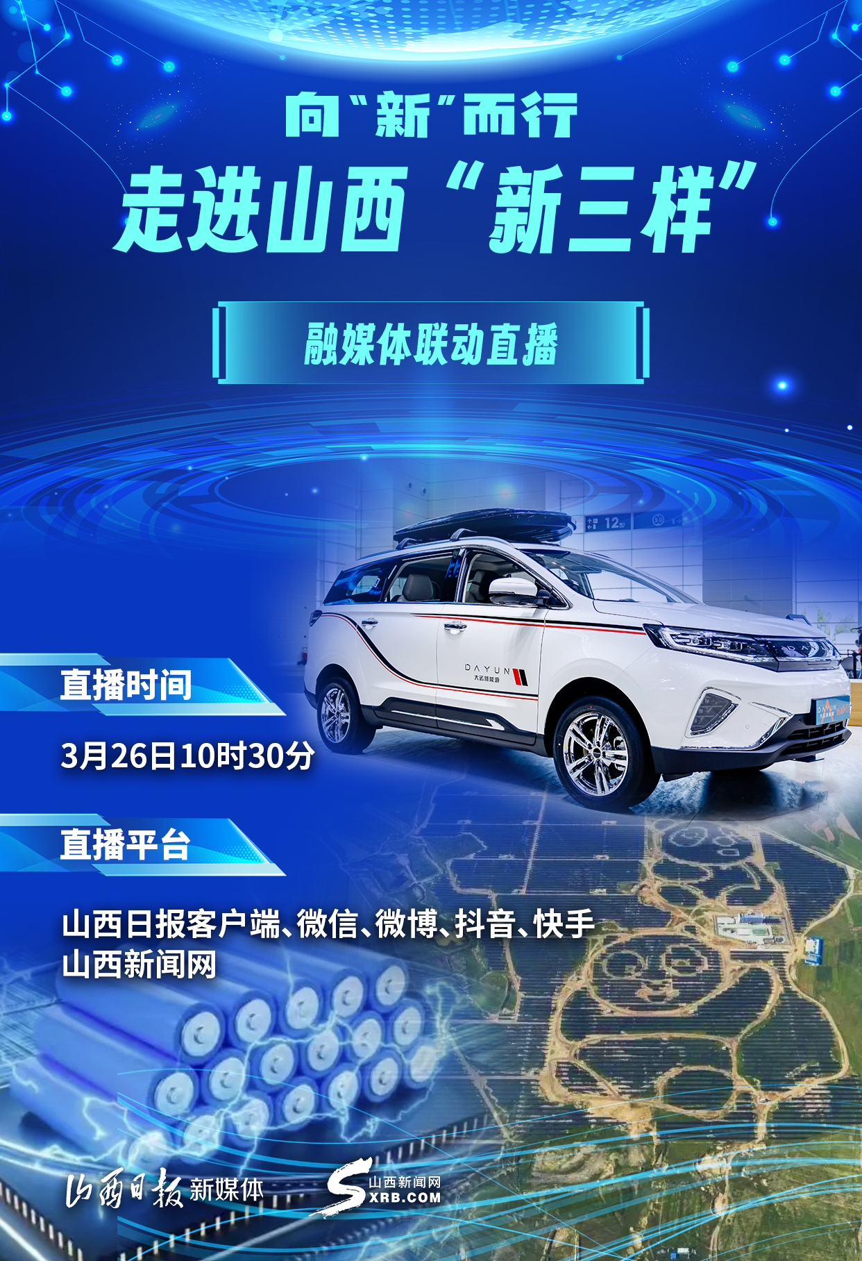 山西日報新媒體記者張馨報道 2024年的春天,萬象生輝,蓬勃奮進。在3月中旬結(jié)束的2024全國兩會上,“新三樣”成為熱詞。3月26日,山西日報新媒體、山西新聞網(wǎng)聯(lián)合推出——向“新”而行,走進山西“新三樣”融媒體聯(lián)動直播。