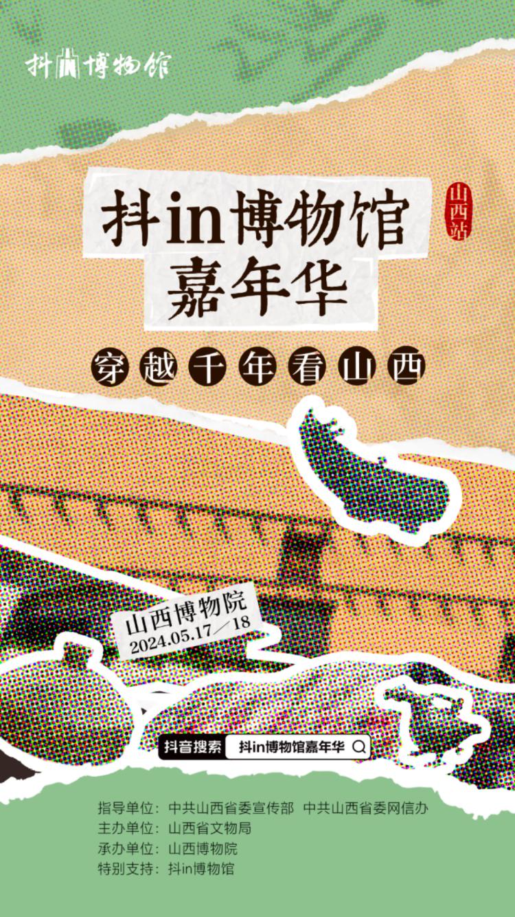 黃河新聞網(wǎng)訊(記者趙晗琳)在“5·18國際博物館日”到來之際,穿越千年看山西-抖音文博季啟動(dòng)儀式暨2024年首屆抖in博物館嘉年華開幕式將于5月17日在山西博物院舉辦。本次活動(dòng)由中共山西省委宣傳部、中共山西省委網(wǎng)信辦指導(dǎo),山西省文物局主辦,山西博物院承辦,抖in博物館提供特別支持。