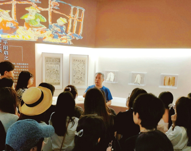 趙國琦針對有一定美術(shù)基礎(chǔ)的大學生開設(shè)平陽木版年畫藝術(shù)培訓班,成立工作室,與80后、90后的年輕人共同設(shè)計文創(chuàng)產(chǎn)品。編制專屬課程、教材,研發(fā)材料包,在上海大學美術(shù)學院、廣州美術(shù)學院、山西大學、晉華中學等大中小學開設(shè)課程,傳授技藝;開展研學活動,全力推動平陽木版年畫進景區(qū)、進社區(qū),努力讓非遺煥發(fā)新的活力。