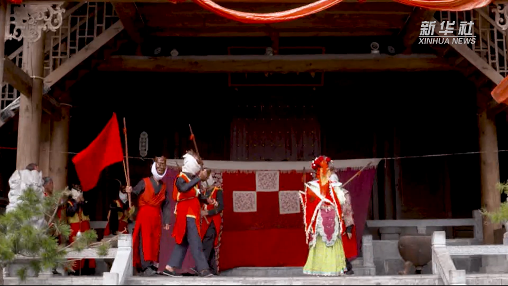 地處武陵山區(qū)的重慶市酉陽土家族苗族自治縣,農歷五月迎來水稻插秧后的農閑期。忙完插秧工作的陳永霞、冷定祥,在田埂上一邊休息一邊比劃起新劇目的表演動作。