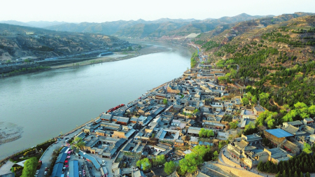 逝者如斯乎,不舍晝夜。悠悠的黃河水在晉陜峽谷間奔流不息,亙古不變。晉陜大峽谷中段,黃河與湫水河交匯處下游,平緩溫情的黃河水瞬間變得波濤洶涌,咆哮聲響徹山谷,400米寬的河道急速轉(zhuǎn)彎縮窄百米內(nèi),這就是著名的大同磧。大同磧上游與湫水河交匯處,面向黃河,北靠臥虎山,形成了地理上半圓形的磧口古鎮(zhèn)。因特殊的地理位置,磧口漸漸形成水旱碼頭,成為晉商們轉(zhuǎn)運(yùn)物資的西大門,古代商貿(mào)活動(dòng)因此而興。