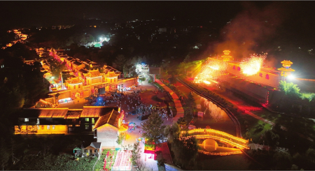 夜幕降臨,火花四濺,光影交錯(cuò),在裸眼3D技術(shù)打造的場景藝術(shù)下,一場《如愿大陽》實(shí)景戲劇悄然登場,婉轉(zhuǎn)的音樂和動(dòng)人的故事仿若解讀著千年大陽鐵文化,讓游人懷揣著對歷史文化的探尋,沉浸式走進(jìn)這千年古鎮(zhèn),一睹往日恢宏……