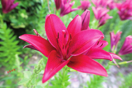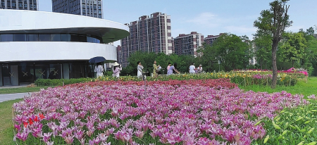 百合花種類繁多,形態(tài)各異。純凈高雅的白色、熱情嫵媚的紅色、明麗澄澈的橙黃、浪漫俏皮的粉紅、雍容華貴的紫色,形似漏斗,又如喇叭,或向上開(kāi)花,張揚(yáng)外翻、極端華麗,或含露低垂,矜持含蓄、超凡脫俗。花間蜂蝶飛舞,暗香浮動(dòng),游人三五成群,在花叢合影拍照,游玩嬉戲,好不愜意。市民王女士對(duì)這里贊賞有加:“看到這五顏六色的百合花,我的心情像盛開(kāi)的花一樣,特別美!這里每季有每季的花開(kāi),每次來(lái)都有不一樣的驚喜和精彩。”