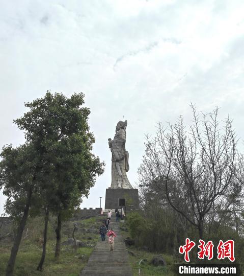 沿著山路盤旋而上,李白當年于白兆山所寫下的詩句,恰如眼前看到的風景。遠遠地,一座高大的雕像映入眼簾。為紀念李白,白兆山上修建了一座花崗巖李白石像:只見他左手緊握劍柄,目視遠方,似有“我本楚狂人,鳳歌笑孔丘”之豪氣。