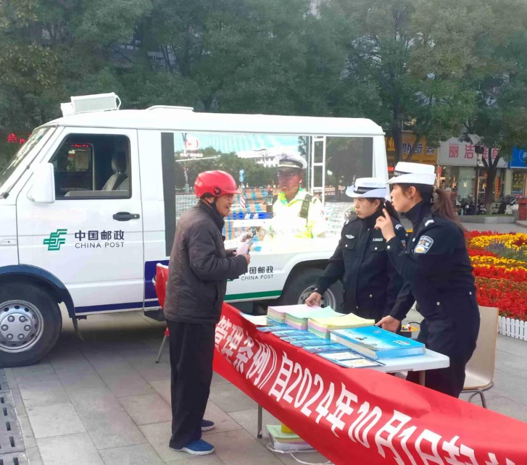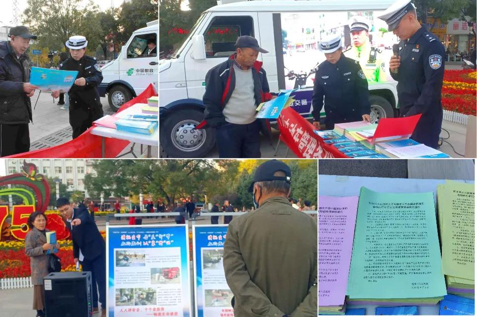 在人頭攢動的廣場上,“一盔一帶”宣傳展板、警郵直播車大屏幕吸引了過往群眾駐足觀看。“大媽,新修訂的《忻州市電動車管理條例》已于本月1日起開始施行,您知道嗎?”“大叔,您這舊的電動自行車要抓緊時間登記備案、辦理臨時牌照,咱忻府區(qū)24個警郵合作電動自行車便民登記服務(wù)網(wǎng)點(diǎn)都能辦理過渡期臨牌”“騎乘電動自行車必須要佩戴安全頭盔,不能闖紅燈、逆行......”