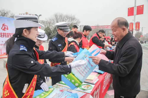 活動(dòng)現(xiàn)場(chǎng),交警支隊(duì)宣傳科、古城大隊(duì)七一崗的交警們身披綬帶,與各單位的志愿者們一起設(shè)立宣傳臺(tái),擺放交通事故警示教育宣傳展板,為過(guò)往群眾提供交管業(yè)務(wù)咨詢、開(kāi)展電動(dòng)自行車(chē)上牌上戶、騎行電動(dòng)車(chē)要佩戴安全頭盔、駕車(chē)拒絕酒駕等普法宣傳,通過(guò)發(fā)放交通安全宣傳資料,向群眾講解安全過(guò)馬路、遠(yuǎn)離貨車(chē)盲區(qū)、“一盔一帶”等交通安全常識(shí),倡導(dǎo)群眾自覺(jué)抵制交通陋習(xí),讓“走文明路、行文明車(chē)、做文明人”成為自覺(jué)和安全出行的前提。