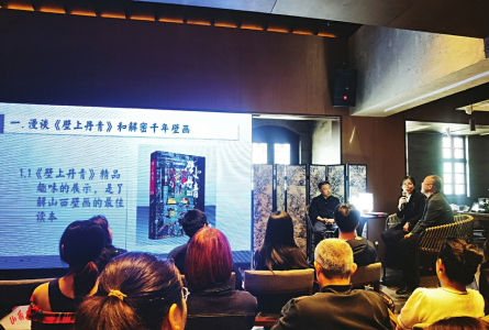 這場講座備受文博迷們關(guān)注,預(yù)告一經(jīng)發(fā)布,便達到報名滿額的狀態(tài)。當日,現(xiàn)場更是座無虛席,不乏默默站著聆聽的觀眾。專家們帶領(lǐng)大家穿越千年時光,從漢魏墓室壁畫開始,將壁畫的線條、配色、技術(shù)、布局等一一揭曉。史宏蕾教授從平陸縣棗園漢墓壁畫、大同沙嶺墓、太原婁睿墓講起,壁畫上的鑿井青龍、白虎和玄武形象、還原農(nóng)業(yè)生產(chǎn)景象的牛耕壁畫、一對墓主人夫婦的畫作以及宰羊圖……這些畫作線條優(yōu)美、故事豐富、將當時的生活狀態(tài)表現(xiàn)得活靈活現(xiàn)。史宏蕾教授表示,古代畫匠可以被稱為“巨匠”“藝術(shù)家”,他們的審美、原創(chuàng)力都堪稱為領(lǐng)先,很多時候她更愿意稱這些畫匠為“丹青專職畫家”。